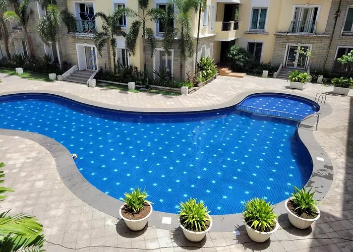 Kivi'S Kozy 2Bhk Luxurious Apartment Goa By Leela Homes Arpora с видом на бассейн находятся в Арпоре, в радиусе 2 км от пляжа Анжуна. Не может не радовать и наличие бассейна, а также расположение возле BENZ CELEBRITY WAX MUSEUM.